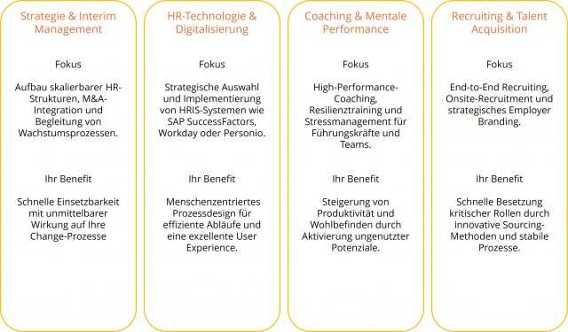 Von der strategischen Neuausrichtung und HR-IT Implementierung bis hin zur mentalen Stärke Ihrer Teams.